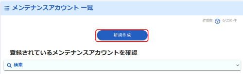 2. メンテナンスアカウント管理メニューの「メンテナンスアカウント一覧」をクリックします。