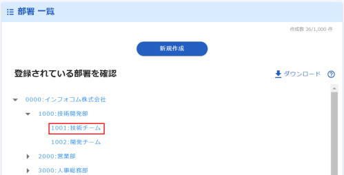 ここでは、「技術チーム」と「開発チーム」が「技術開発チーム」に変更になり、「開発チーム」を削除するという仮定で方法をご案内します。