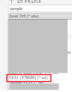 ③ファイルの形式の中から「テキスト(タブ区切り).txt」を選択して、「保存」をクリックします